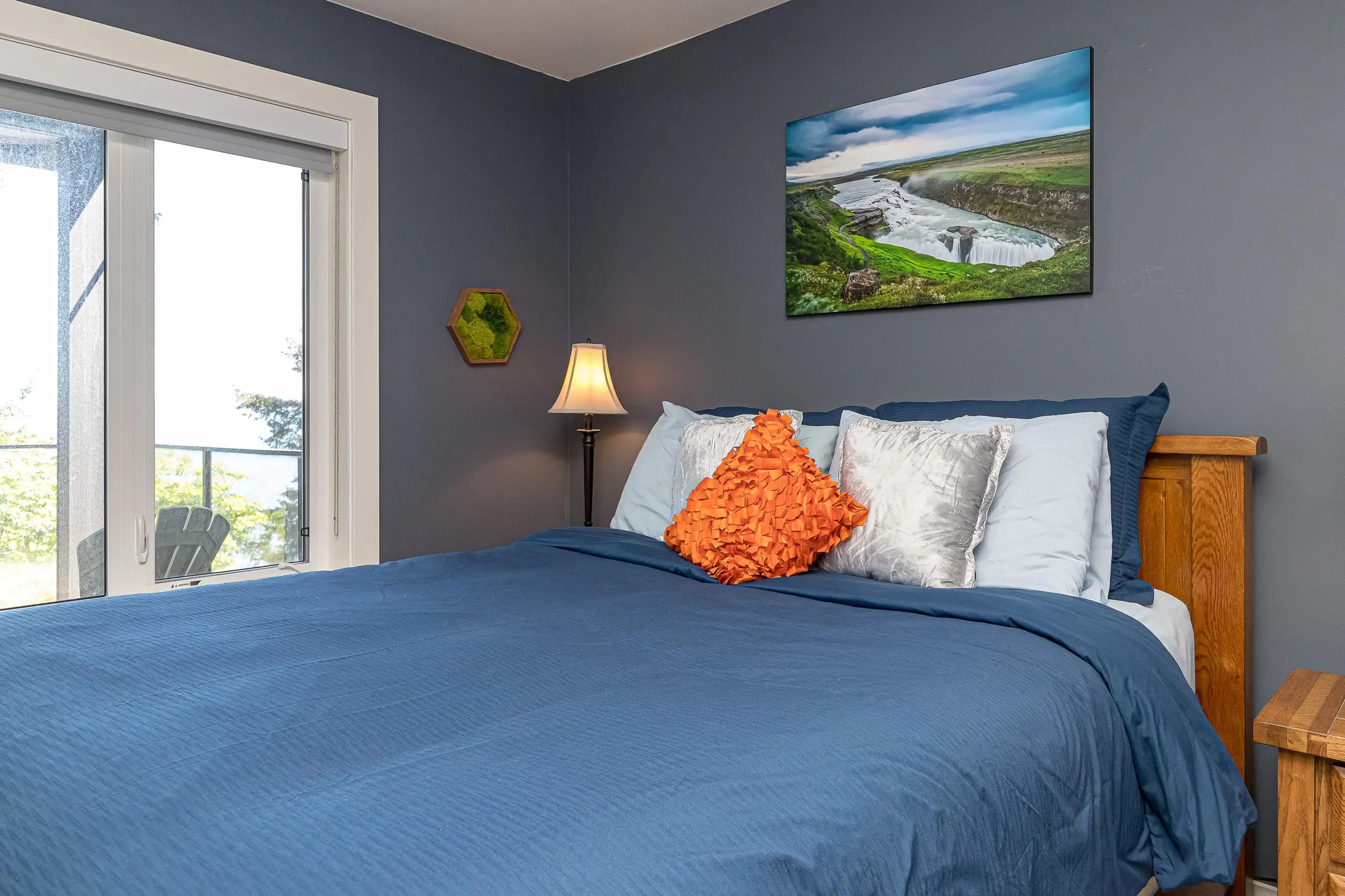 There are 3 bedrooms, one with a king and the other 2 with queen bedrooms, 3 1/2 beautiful bathrooms, a large open concept kitchen, living and dining room, and a patio on every floor. The kitchen has 4 bar seats, and the dining room can seat up to 6 people. The master bedroom comes with a massive water view, including the ensuite bathtub and shower, and don't forget the gas fireplace to warm up on your own little deck. There is a BBQ located on the kitchen level deck that you can cook and enjoy the view all at the same time!