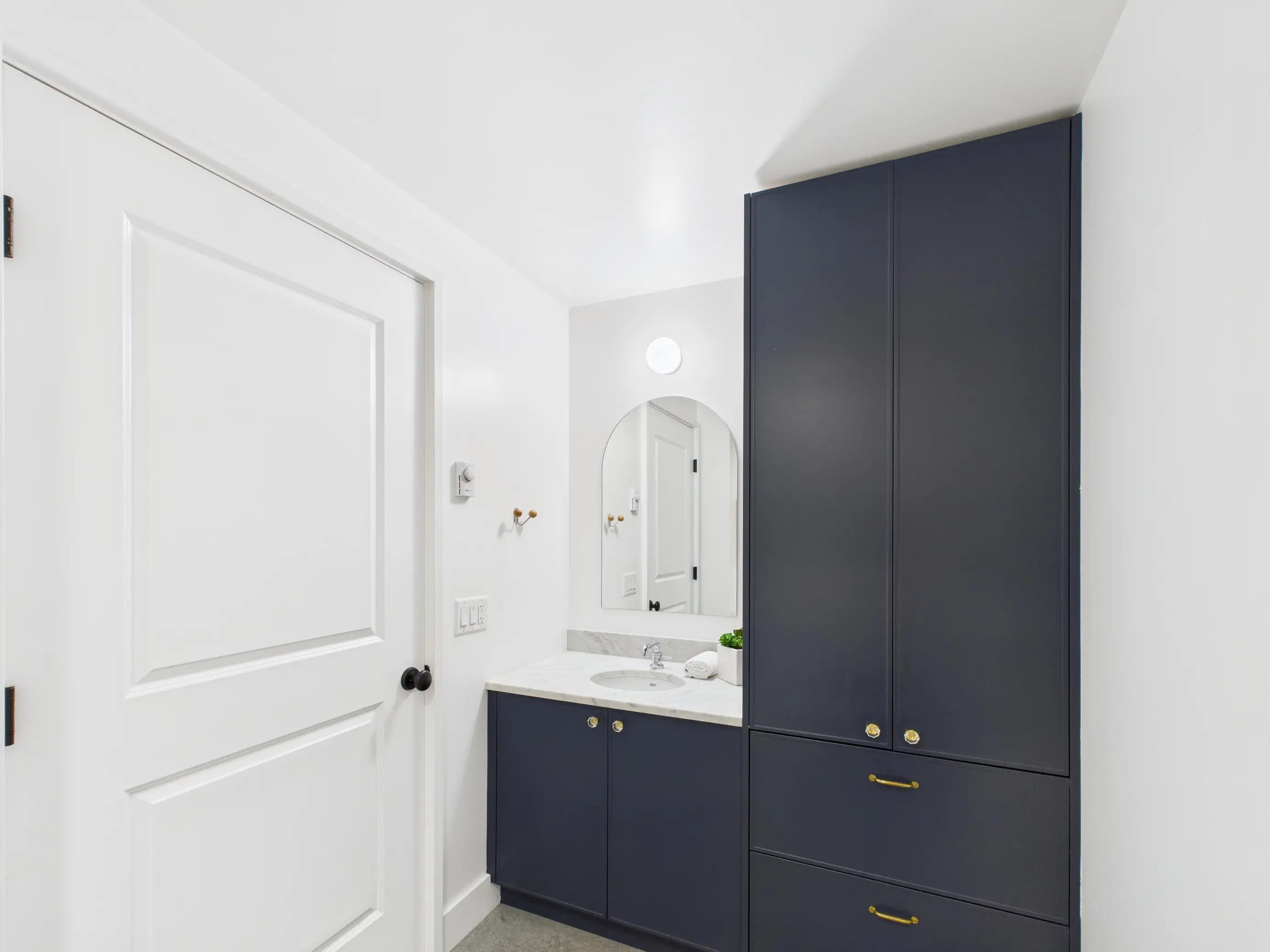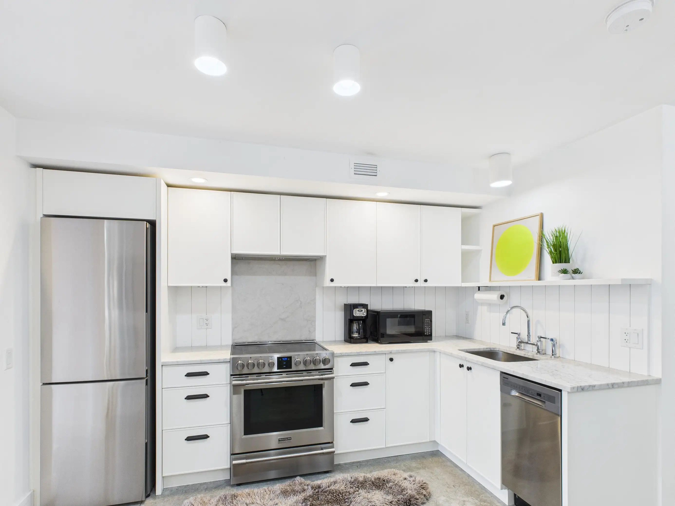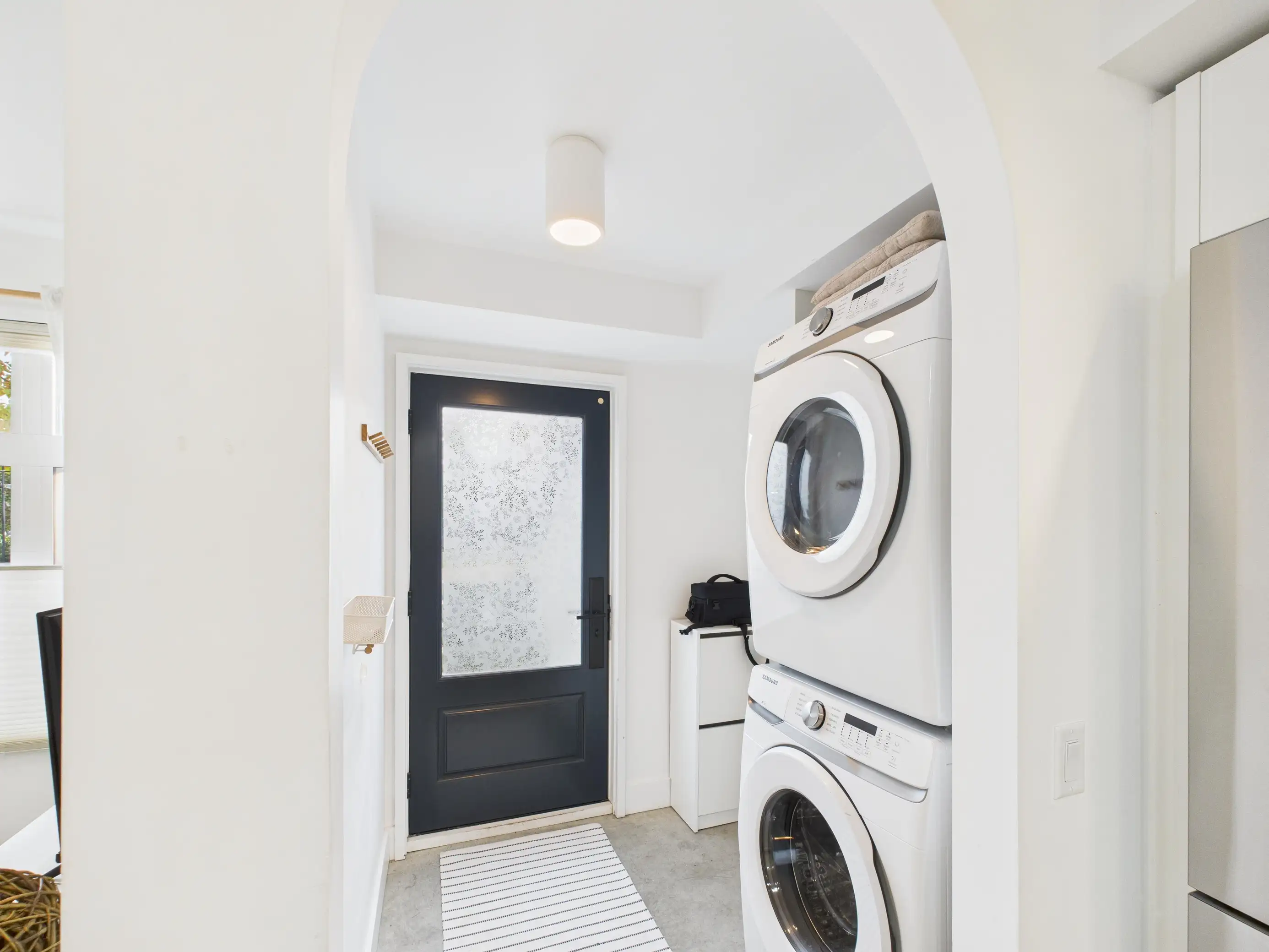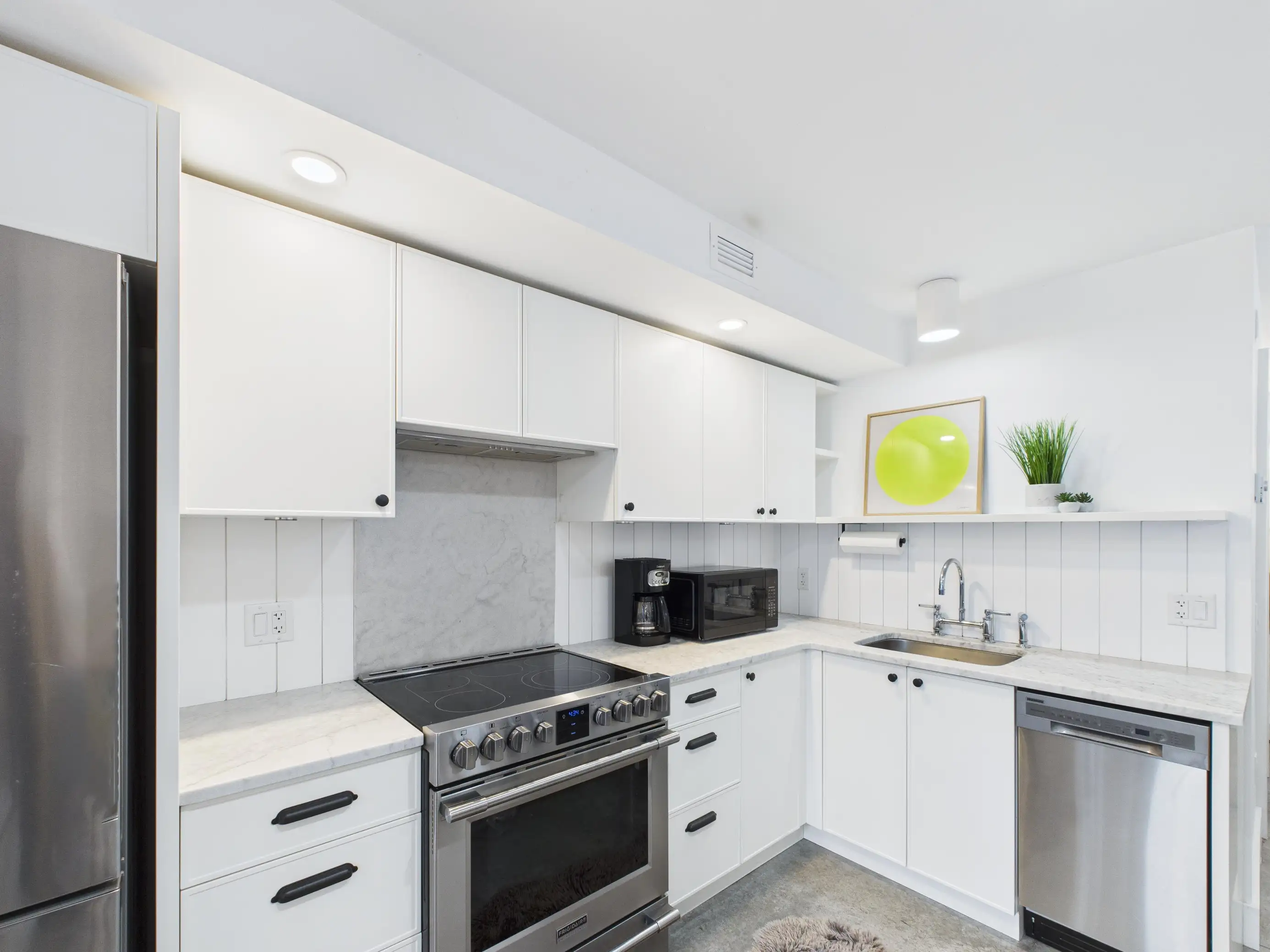 Built in 2021, this stylish one-bedroom home offers the perfect blend of convenience, privacy, and contemporary design. With its own private exterior entrance, you can step directly into your space without the hassle of elevators or shared hallways — ideal for someone who values independence and ease of access. Inside, you’ll find a bright and open layout enhanced by polished concrete floors, triple-paned windows, and a built-in air exchanger for year-round comfort. The kitchen is a true highlight, featuring elegant white marble countertops, sleek cabinetry, and premium stainless-steel appliances, including an air-fryer oven for easy, healthy cooking.