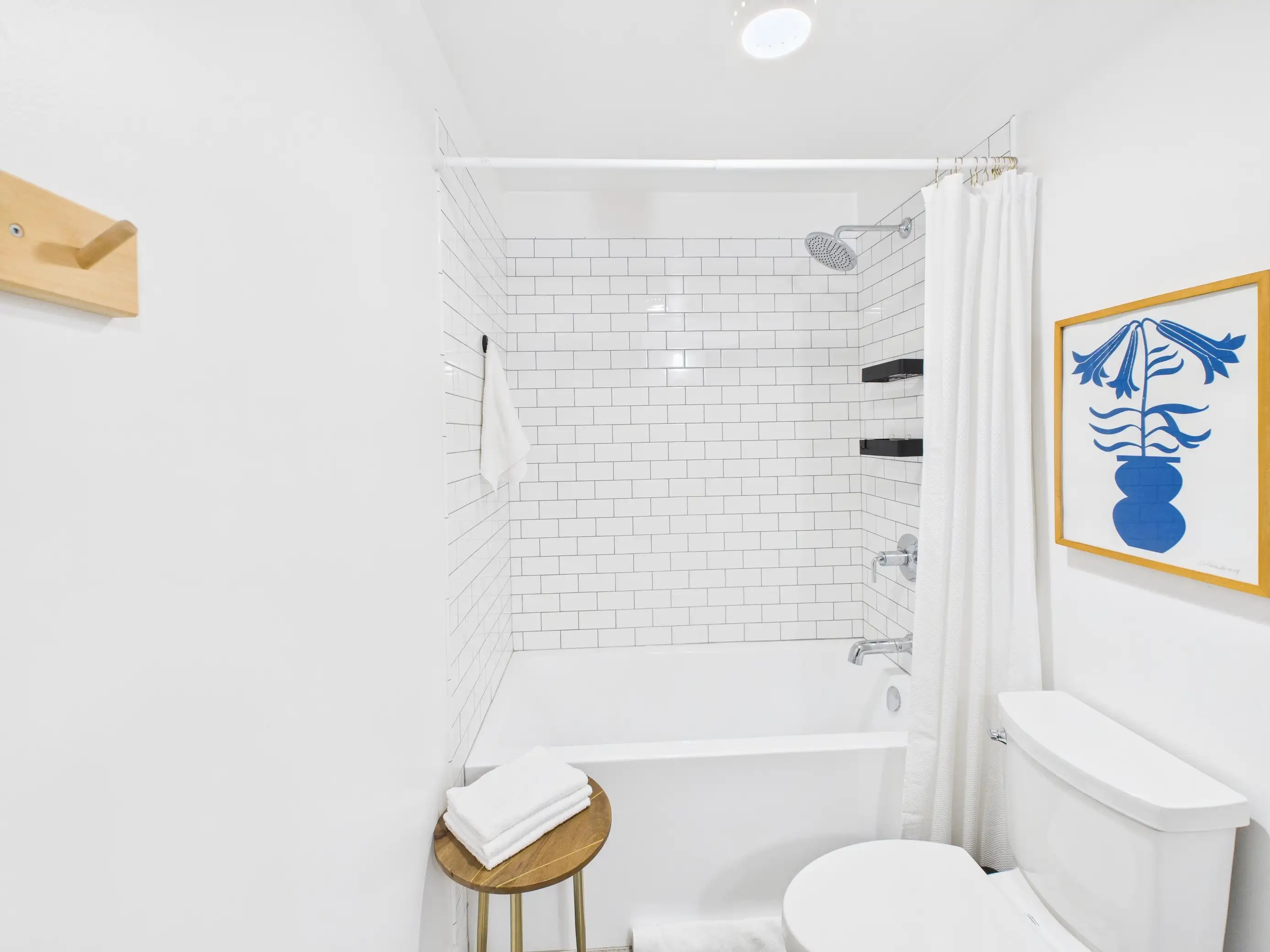 The spacious bathroom invites relaxation with its deep soaker tub and modern fixtures — perfect for unwinding after a long day. Every detail has been thoughtfully selected for both style and quality, from the lighting to the hardware finishes. Wilson Commons is a newer, boutique-style building known for its architectural charm and community atmosphere, complete with secure underground bike storage and Modo car share access for those embracing a car-free lifestyle.