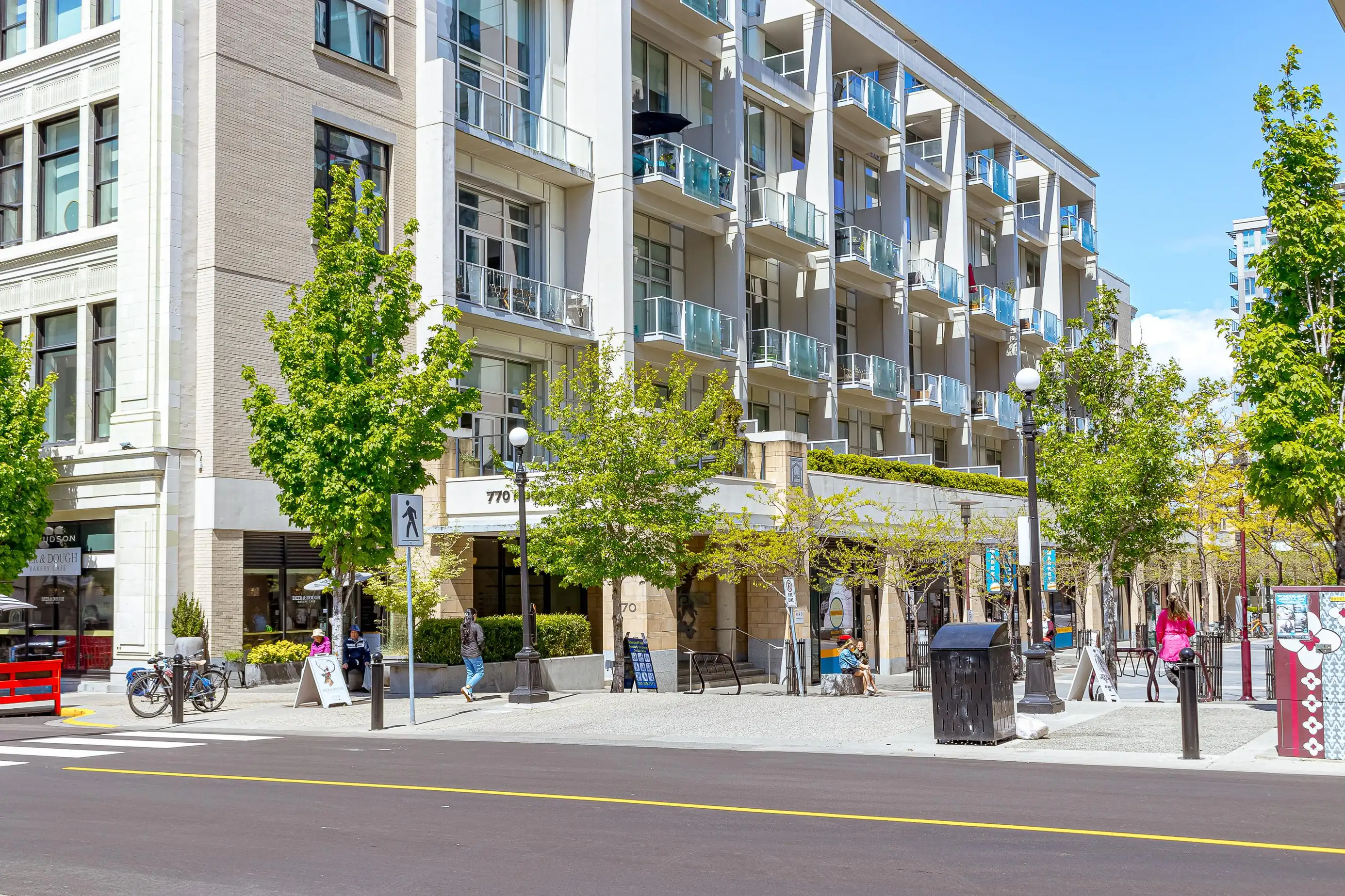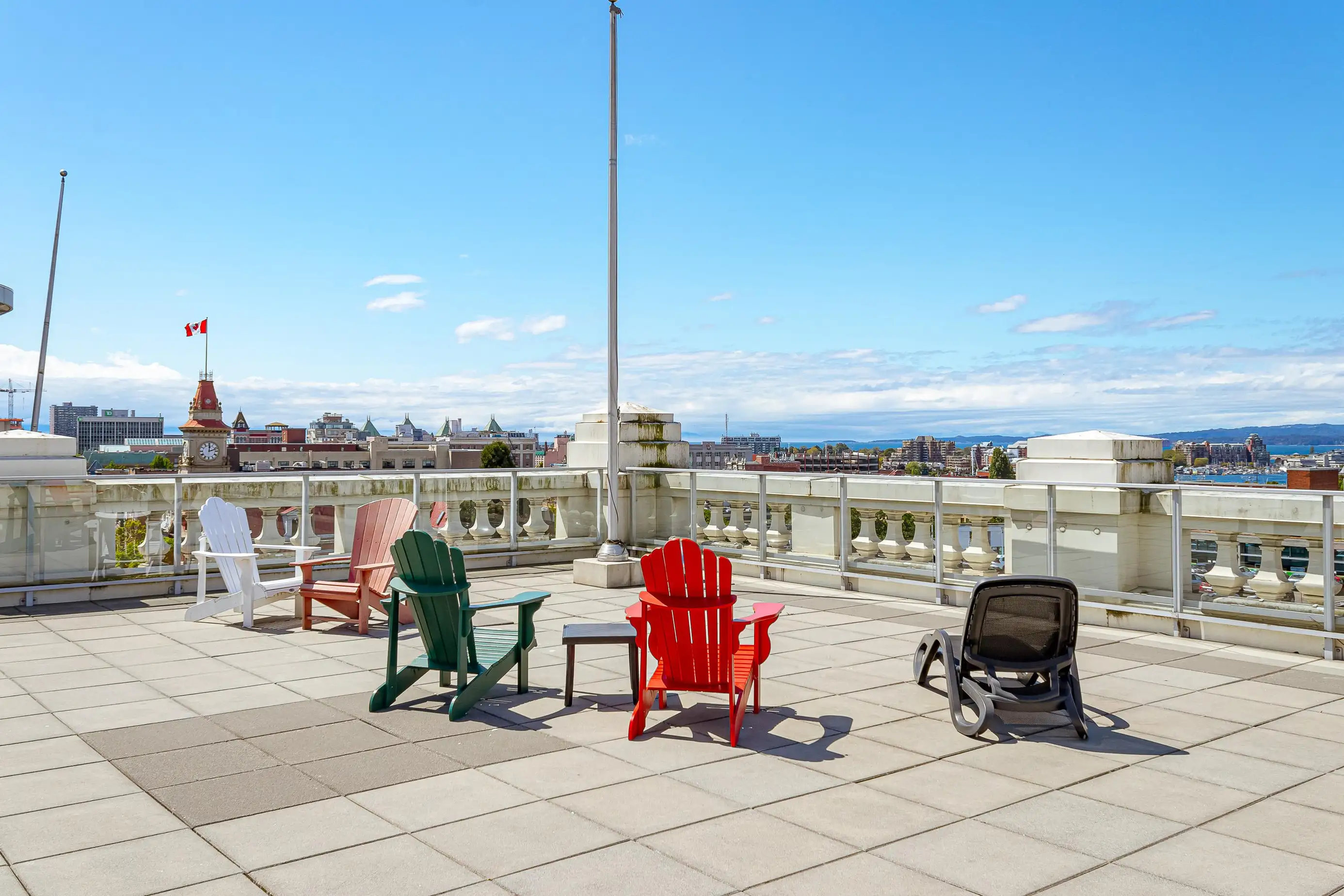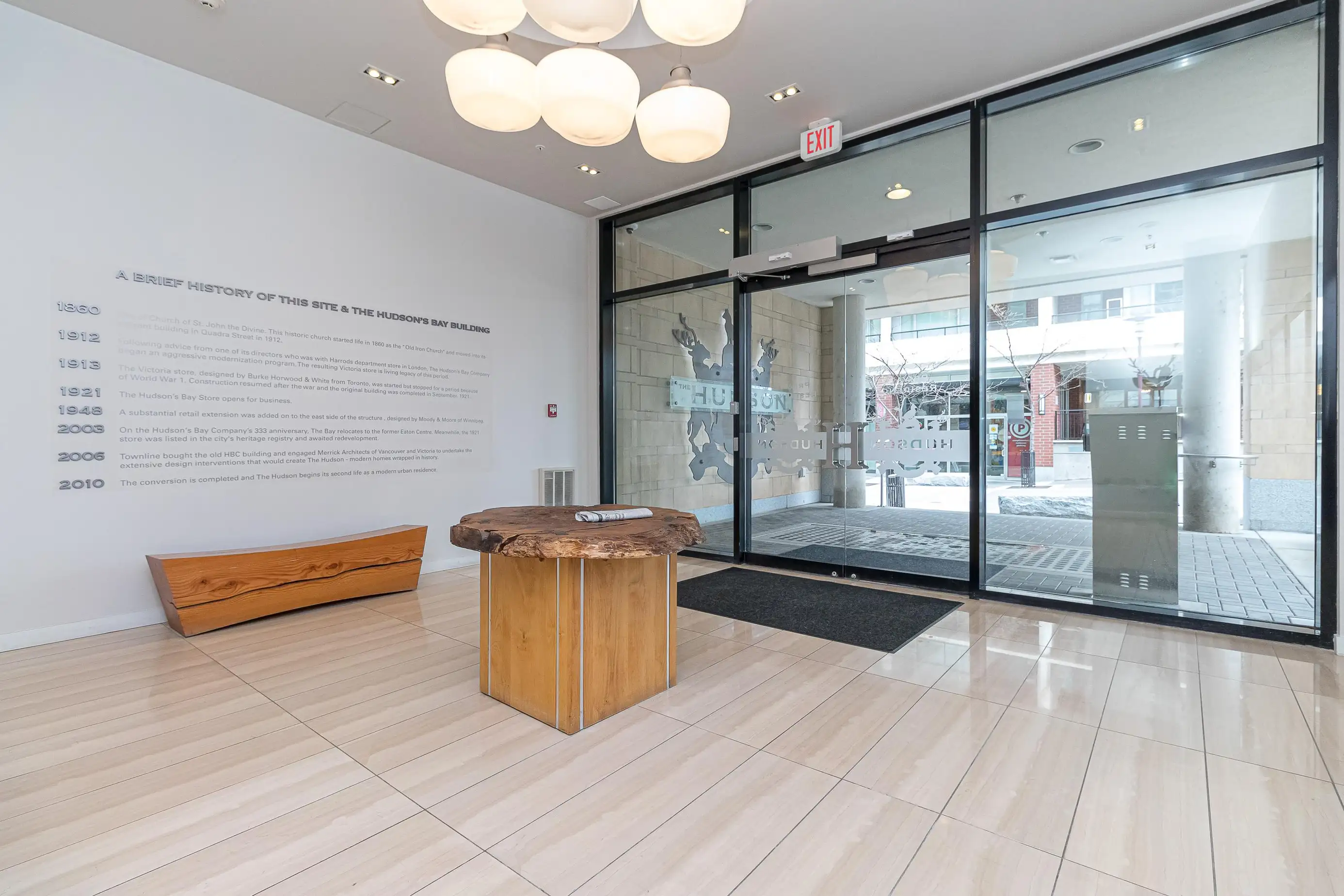 Exquisite Hudson is within walking distance of all the major and minor downtown attractions. Just a few blocks from the Inner Harbour and a few more to the Parliament Buildings and the Royal BC Museum. Restaurants and shopping are also just out your front door. There is also a lovely common area on the same floor that has an inside and outside component. Take your coffee and newspaper and enjoy the gas fireplaces while you do some excellent people-watching!
