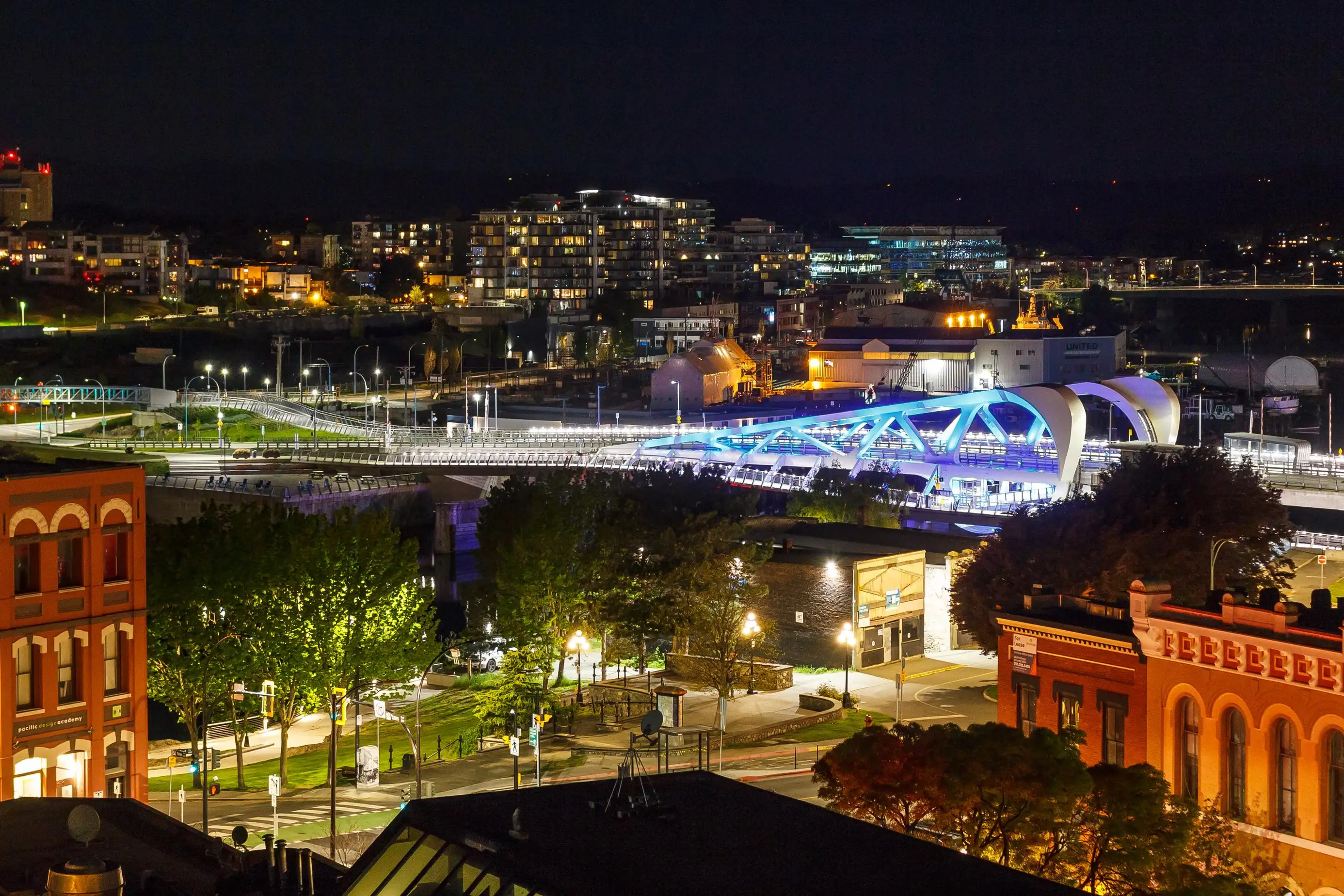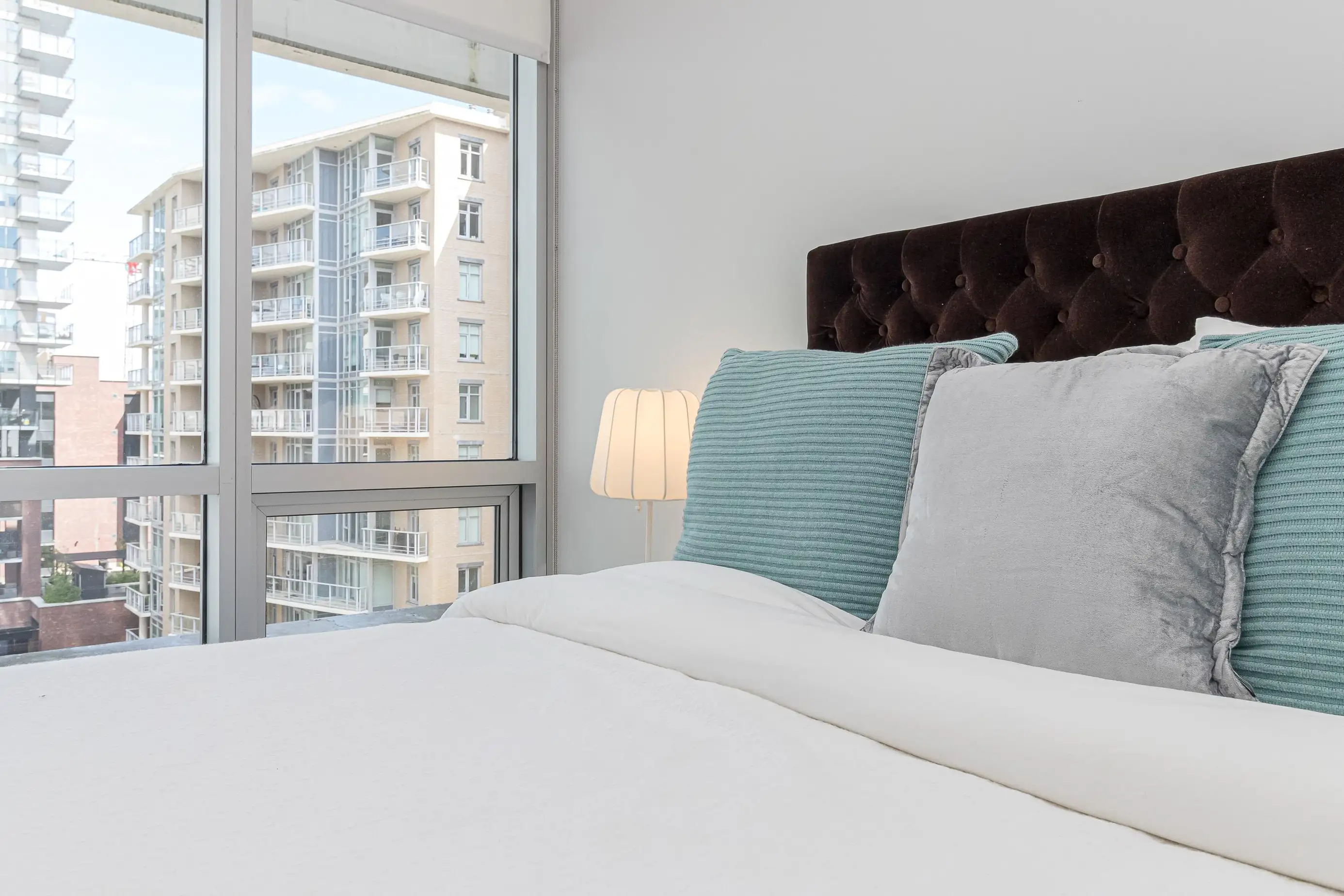 The Hudson is a comprehensive rehabilitation of the historic Hudson’s Bay building in Victoria, converting this once grand department store into modern flats. Exquisite Hudson has a lovely 1174-square-foot floor plan with a patio to sit and enjoy the sights and sounds of Victoria, and a bonus of having your personal BBQ. It is a 2-bedroom 2 2-bathroom 1-den unit with a king bed in the master bedroom and a queen in the second bedroom. There is a large sitting area for visiting or watching TV. An open concept kitchen lets you chat and prepare your favorites. There are stainless appliances and high-end finishing throughout.