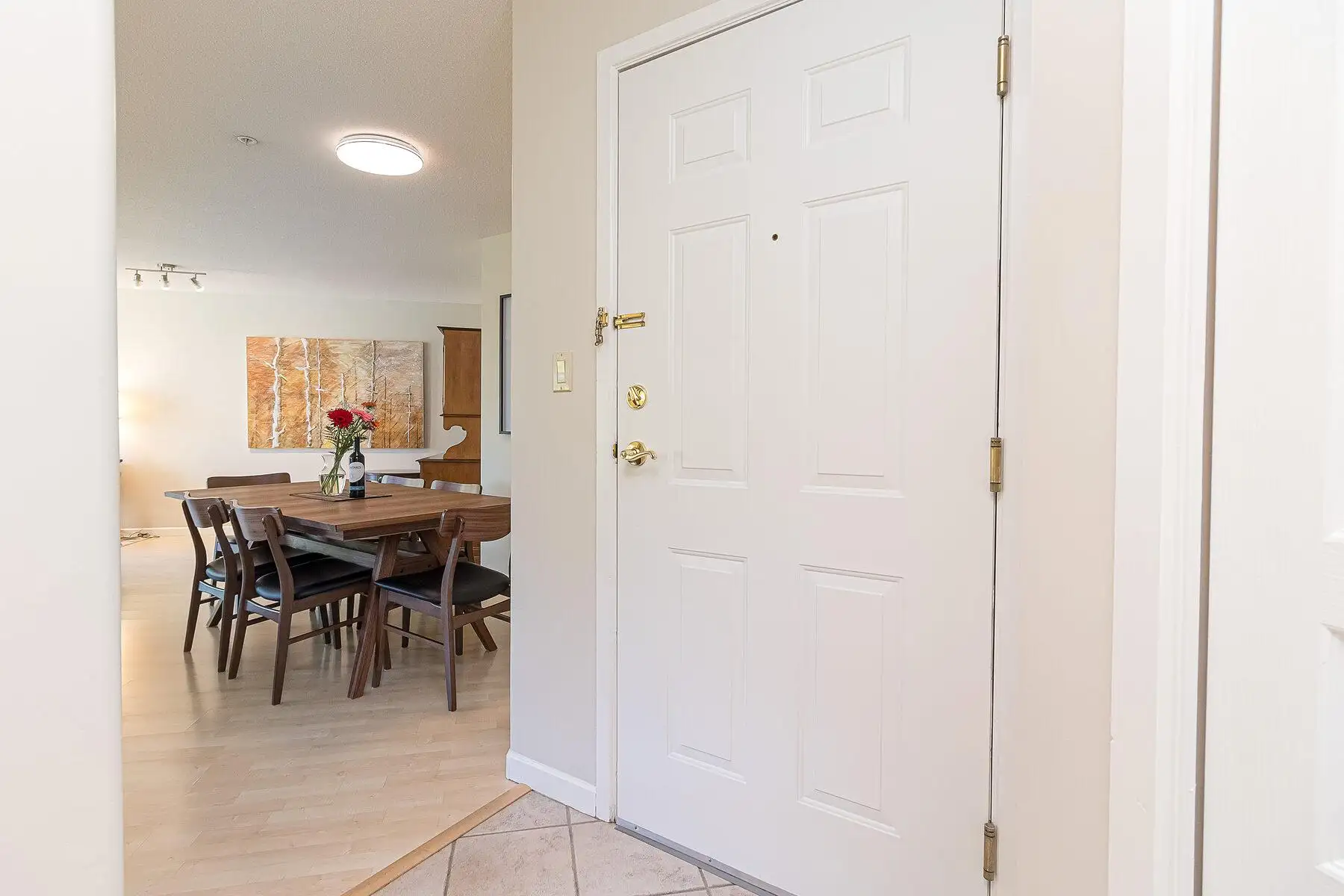 Dining area with elegant wooden table and natural light
