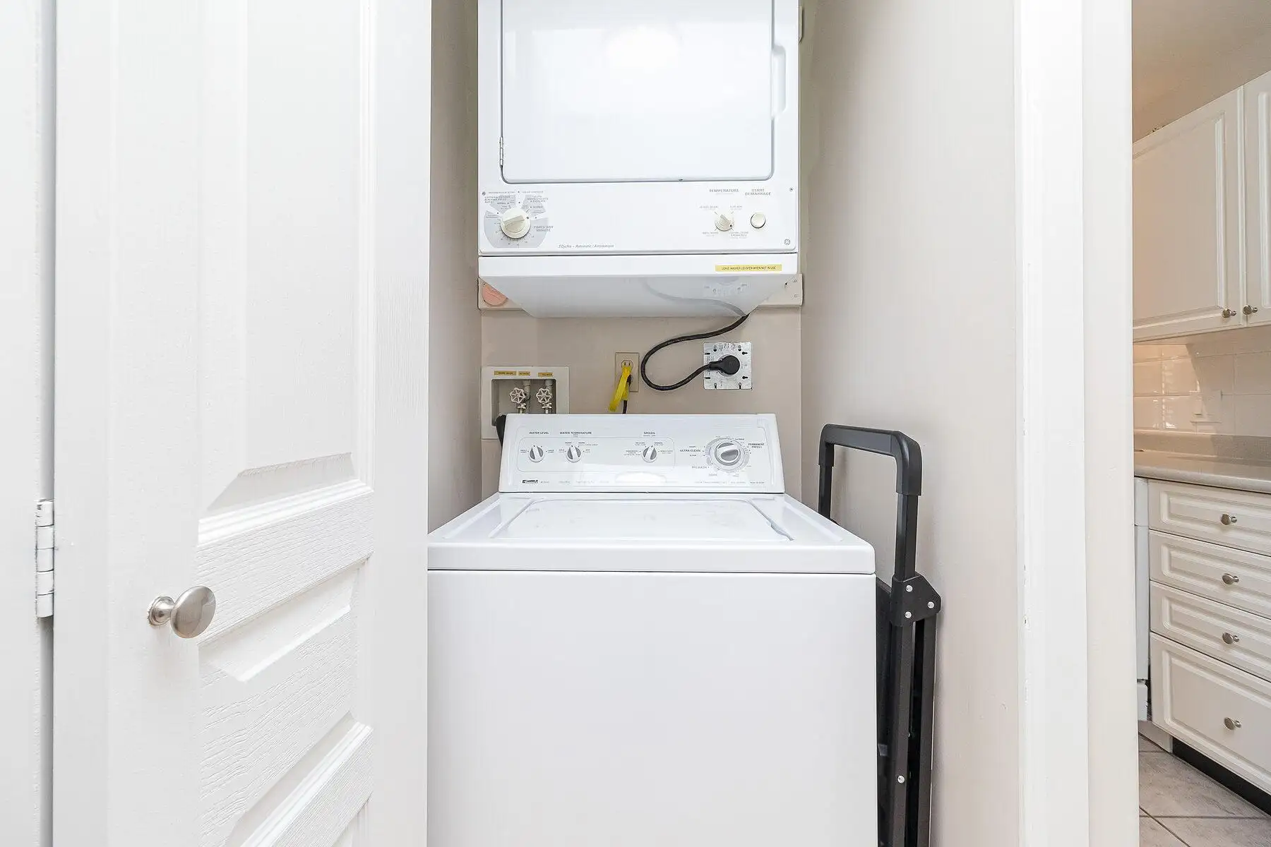 In-unit laundry with stacked washer and dryer