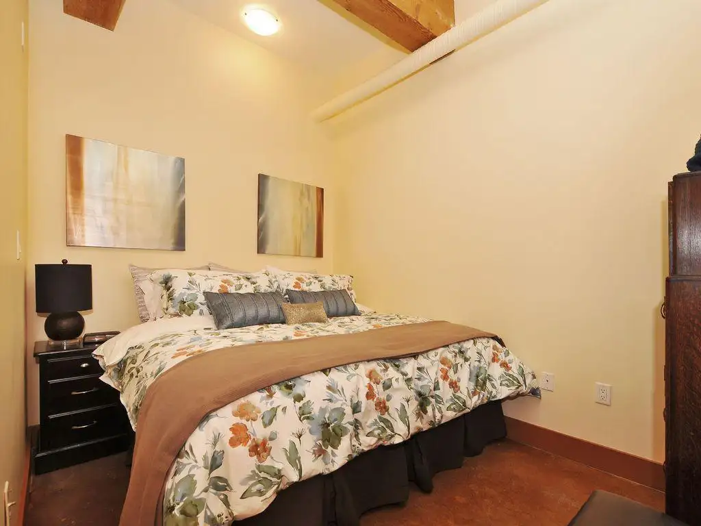 From the moment you step inside, you’re greeted by soaring 11-foot ceilings, original red-brick feature walls, and massive old-growth timber beams that tell the story of the city's vibrant past across more than 950 square feet of airy living space. Your private urban oasis extends outdoors to an expansive, sun-drenched patio—a rare find downtown—offering the perfect vantage point for sipping morning coffee while watching the world go by in the heart of Old Town.